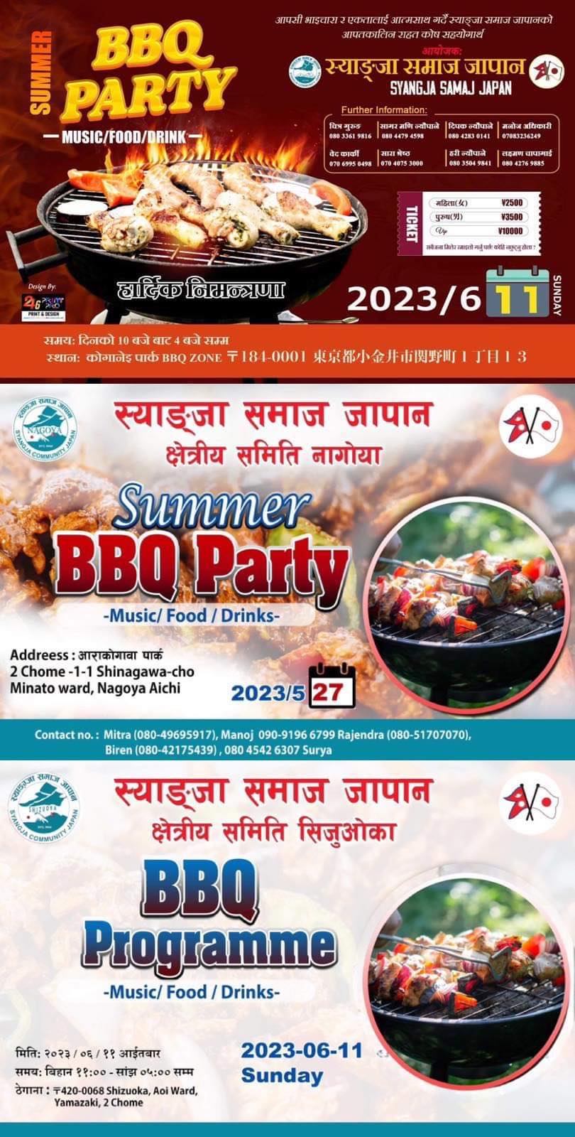 बिगत बर्षहरुमा जस्तै यस वर्षपनि जापानको विभिन्न ठाउँहरुमा समर BBQ पार्टी आयोजना गर्न लागिएको समाजका उपाध्यक्ष समेत रहेका टोकियो कार्यक्रम संयोजक मनोज अधिकारीले बताएका छन्।