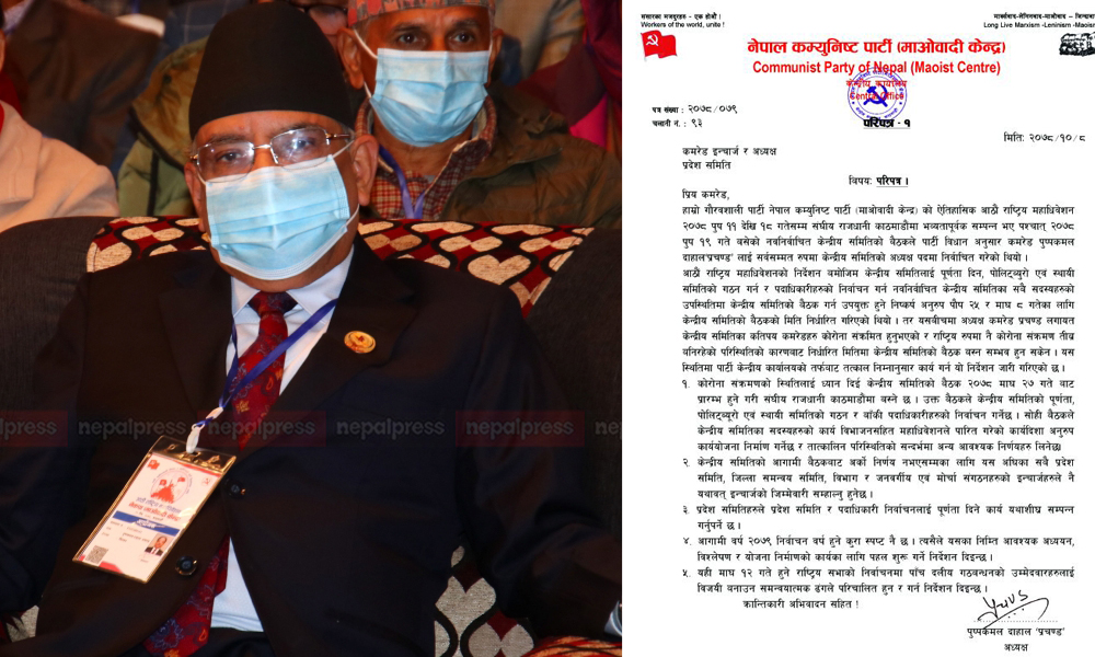 शनिबार अध्यक्ष पुष्पकमल दाहाल ‘प्रचण्ड’ले एक सर्कुलर जारी गर्दै २७ गते बैठक बोलाएका हुन् ।