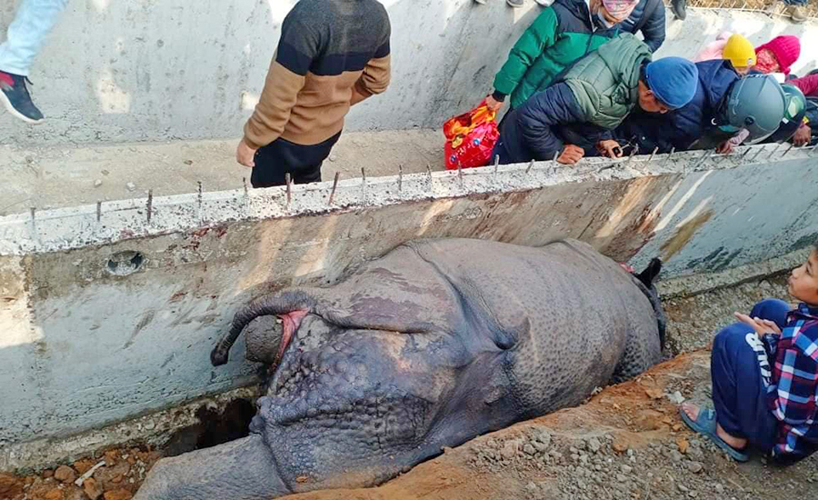भरतपुर महानगरपालिका वडा नं. ९ स्थित गोन्द्राङको प्रहरी बिट अगाडि सडक विस्तारको क्रममा खनिएको नाली र जमिनको बीचको खाडलमा आज एउटा दुर्लभ एक सिंगे गैंडा मरेको थियो । गोन्द्राङस्थित जंगलबाट पूर्व–पश्चिम राजमार्ग पार गर्ने क्रममा गैंडा खोँचमा परेर मरेको हो । हाल नारायणगढको पुल्चोकदेखि गोन्द्राङसम्मको सडक ६ लेन विस्तारको कार्य भईरहेको छ । ठेकेदार कम्पनीले नाली निर्माण गरेपनि नाली निर्माण गर्ने क्रममा खनेको खाडल पुरेको छैन । नालीको दायाबाया ठूला ठूला खाडल रहेका छन् ।